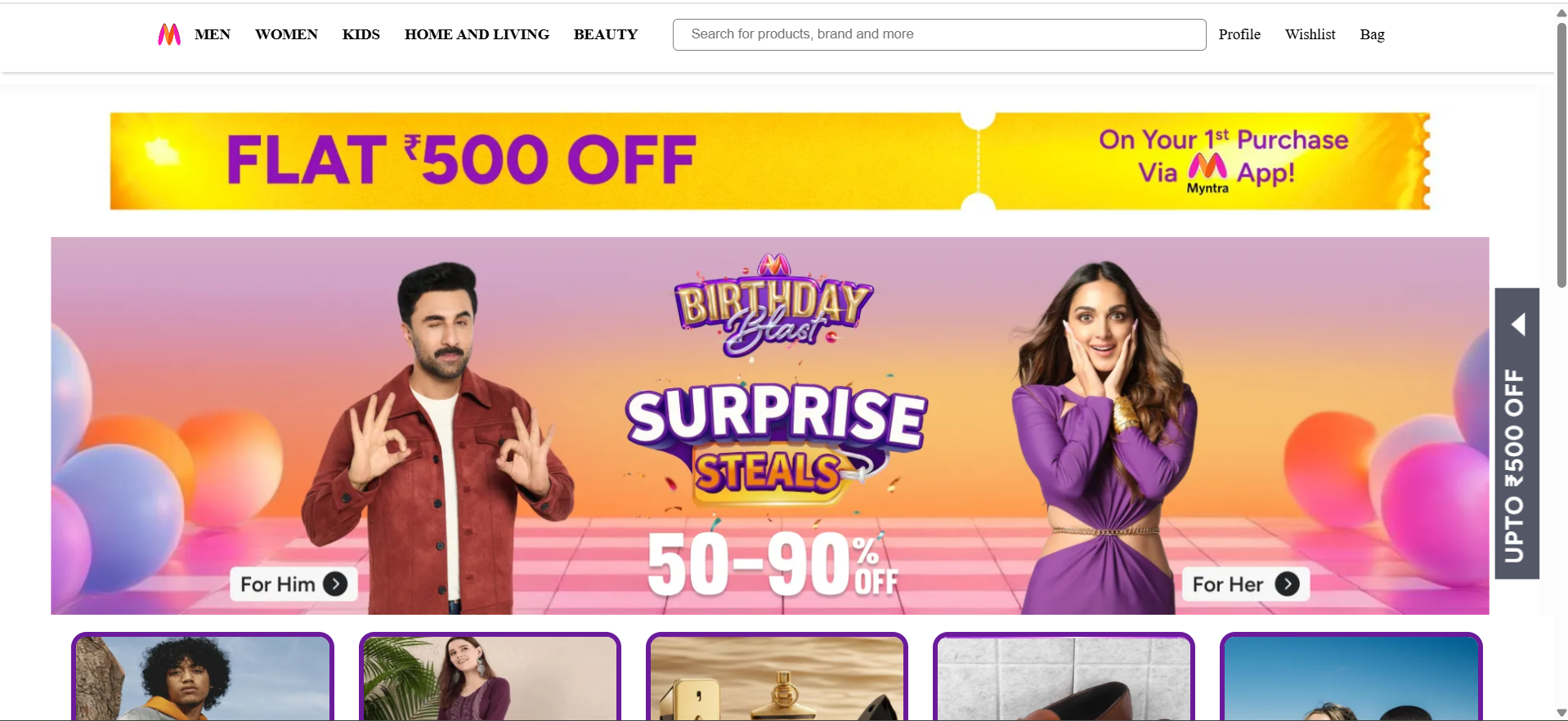 sophisticated myntra clone by using HTML, CSS and JAVASCRIPT.
